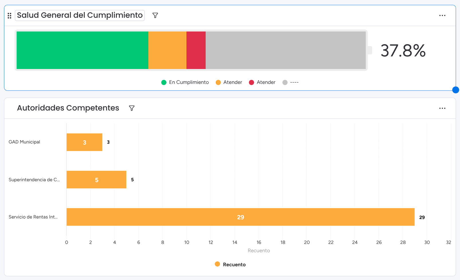 Dashboards con indicadores de control y seguimiento