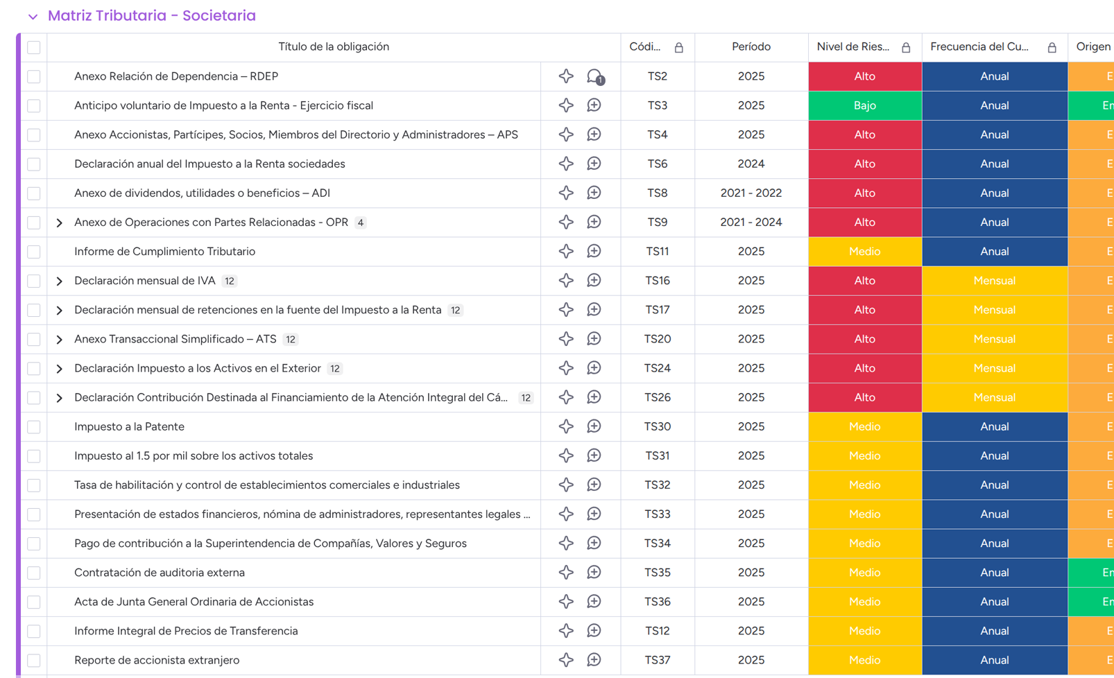 Matrices con responsables, fechas y estatus de tus trámites